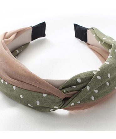 Wide Cross Headband Chiffon Polka Dot Hair Accessories Cloth Turban Headband for Women,Green Brown