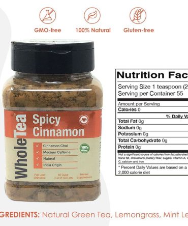 WHOLETEA Natural Spicy Cinnamon, 4 oz(113.5 gm) Full Leaf Gourmet Jar – Makes 55 Cups...