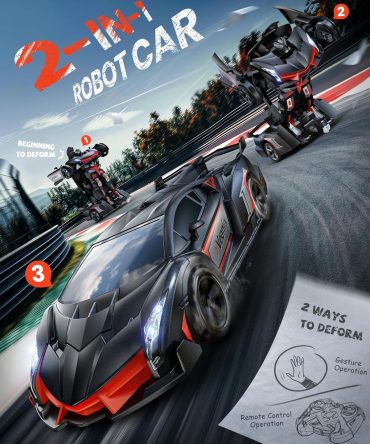 Transform Robot RC Car, 1:14 Scale, 2-in-1 Robot Toy Car with Sound & Light Effects,...