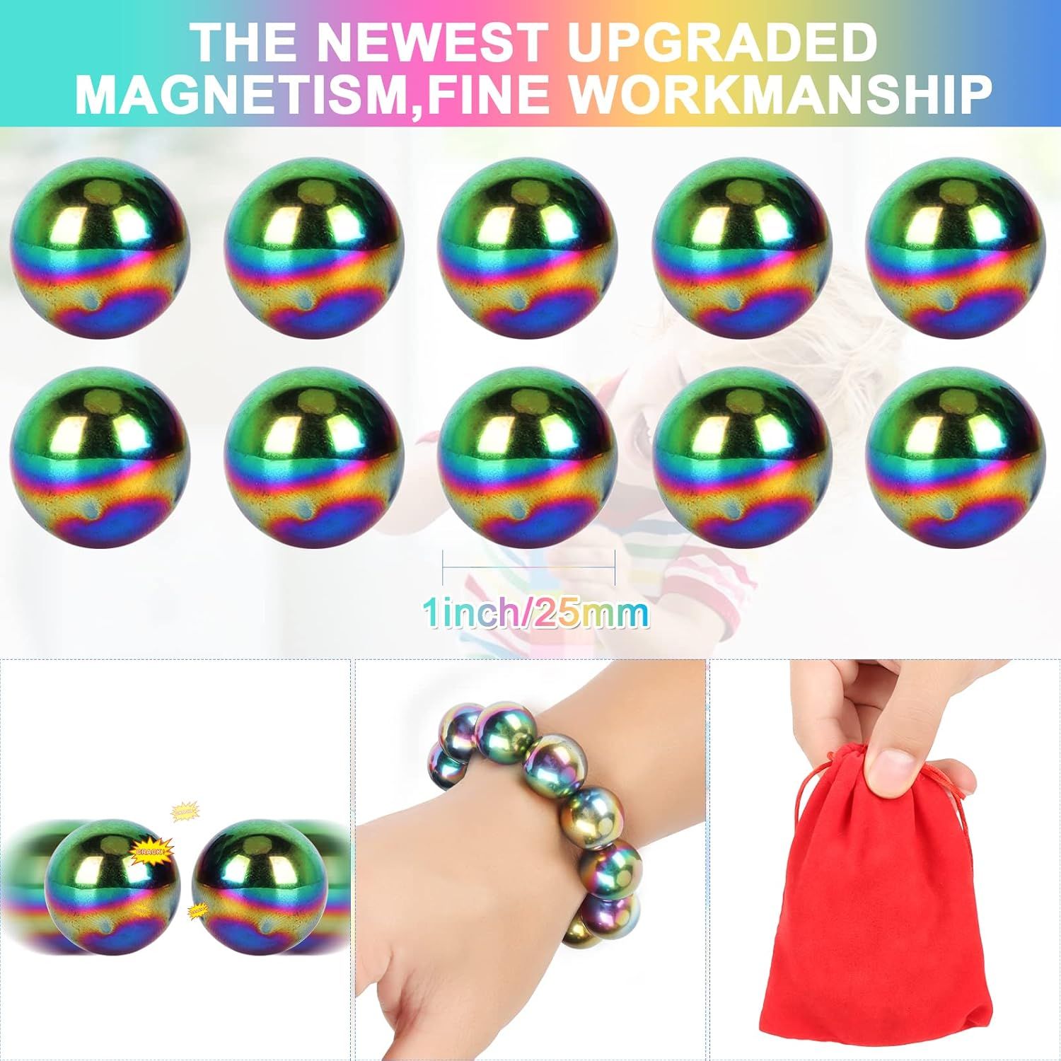 10Pcs Rainbow Hematite Magnetic Stone Kit, DIY Round Polished Magnets for Home Office Kitchen, Educational Science Kit for Wall Stickers, Building Gadgets for Gift