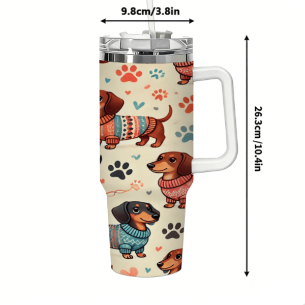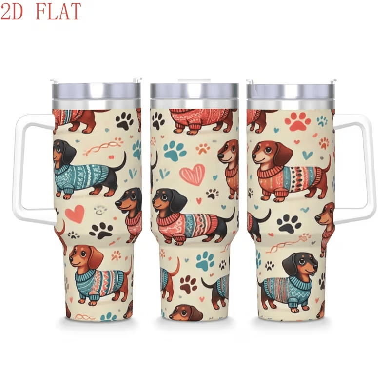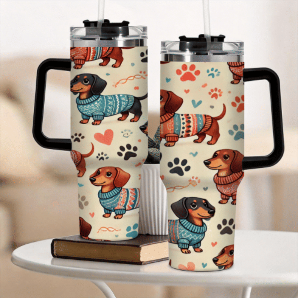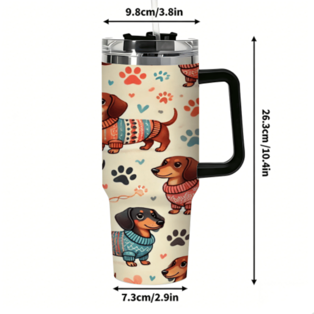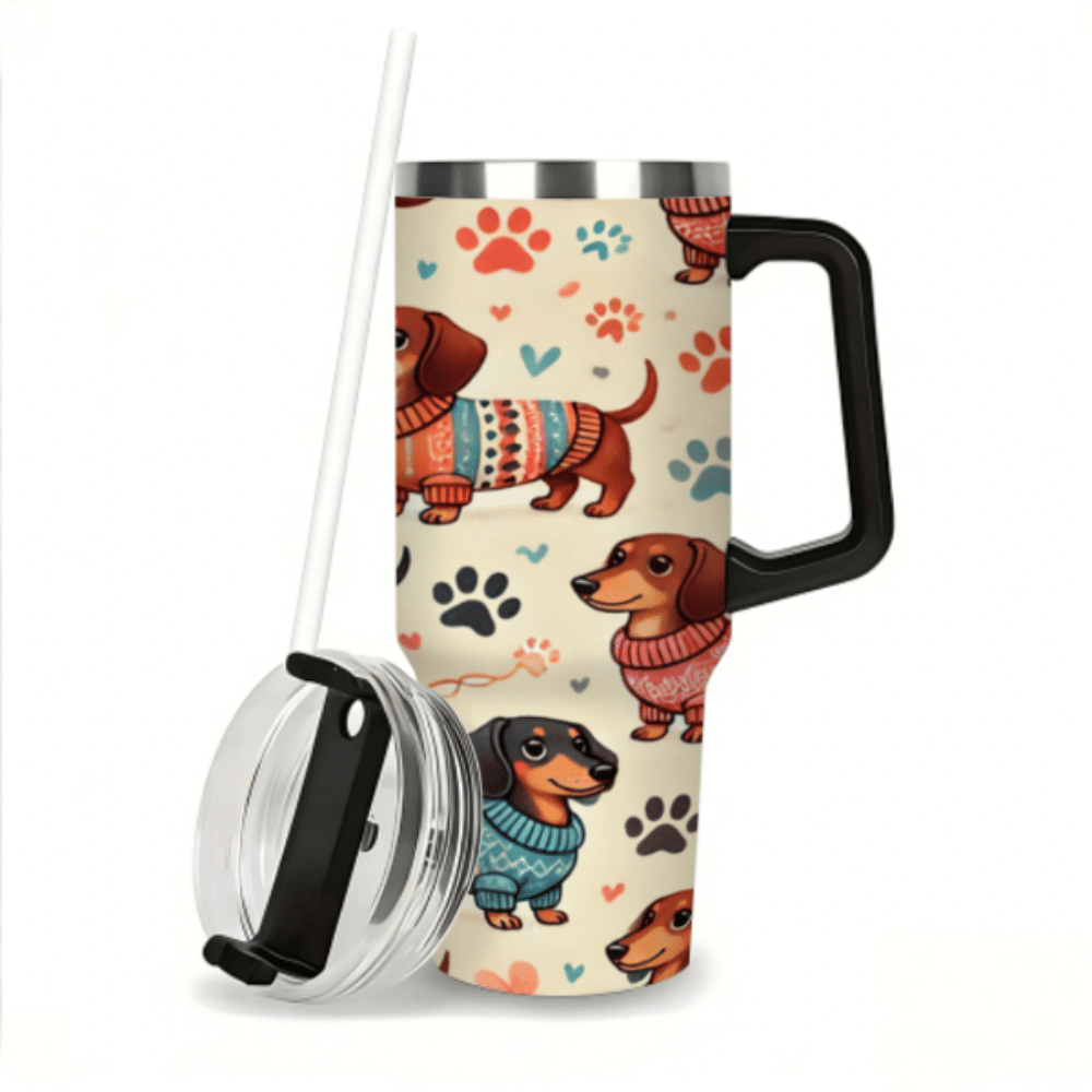 Be the first to review “1pc 2D Flat Printed Dachshund Tumbler, Stainless Steel Car Cup with Retro Polka Dot & Paw Print, Cute Vintage Sweater Dog Water Bottle”