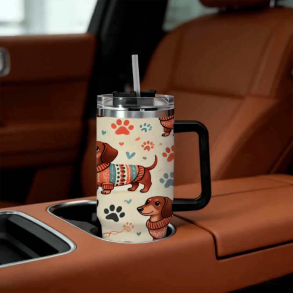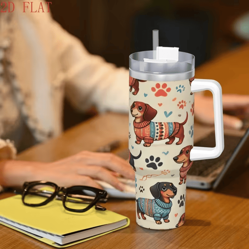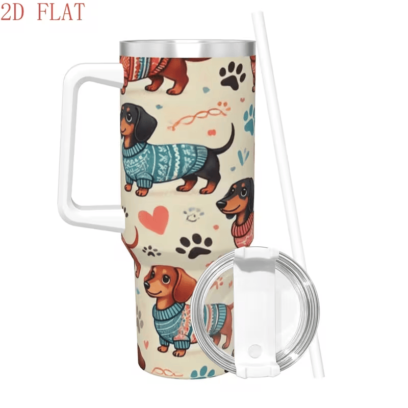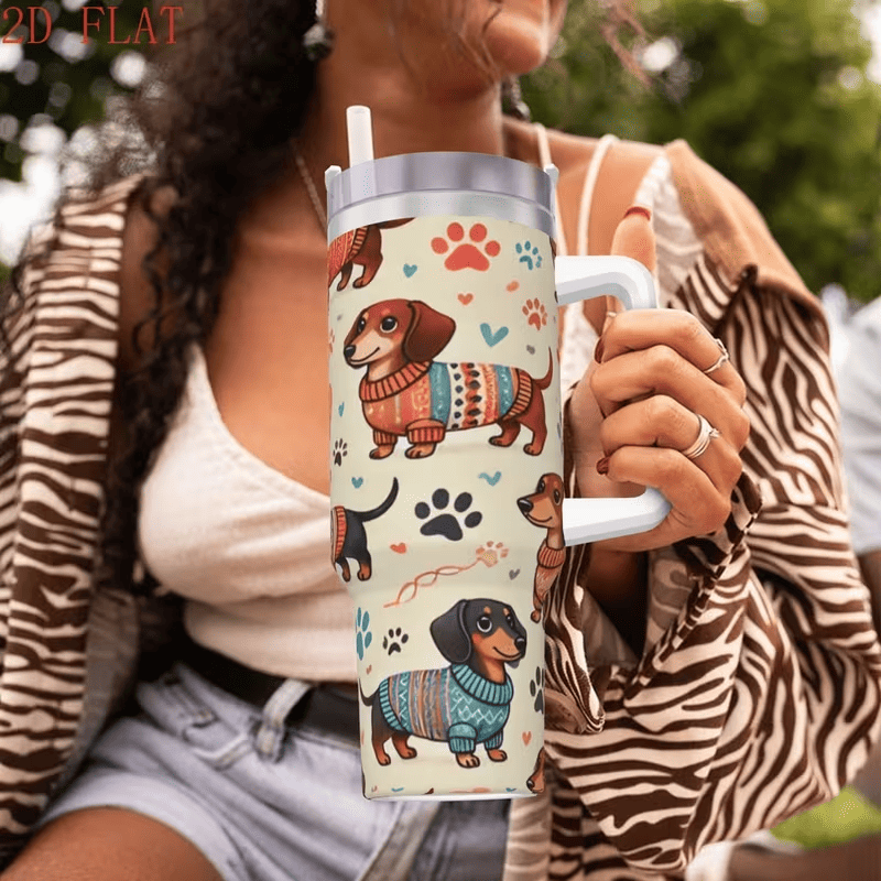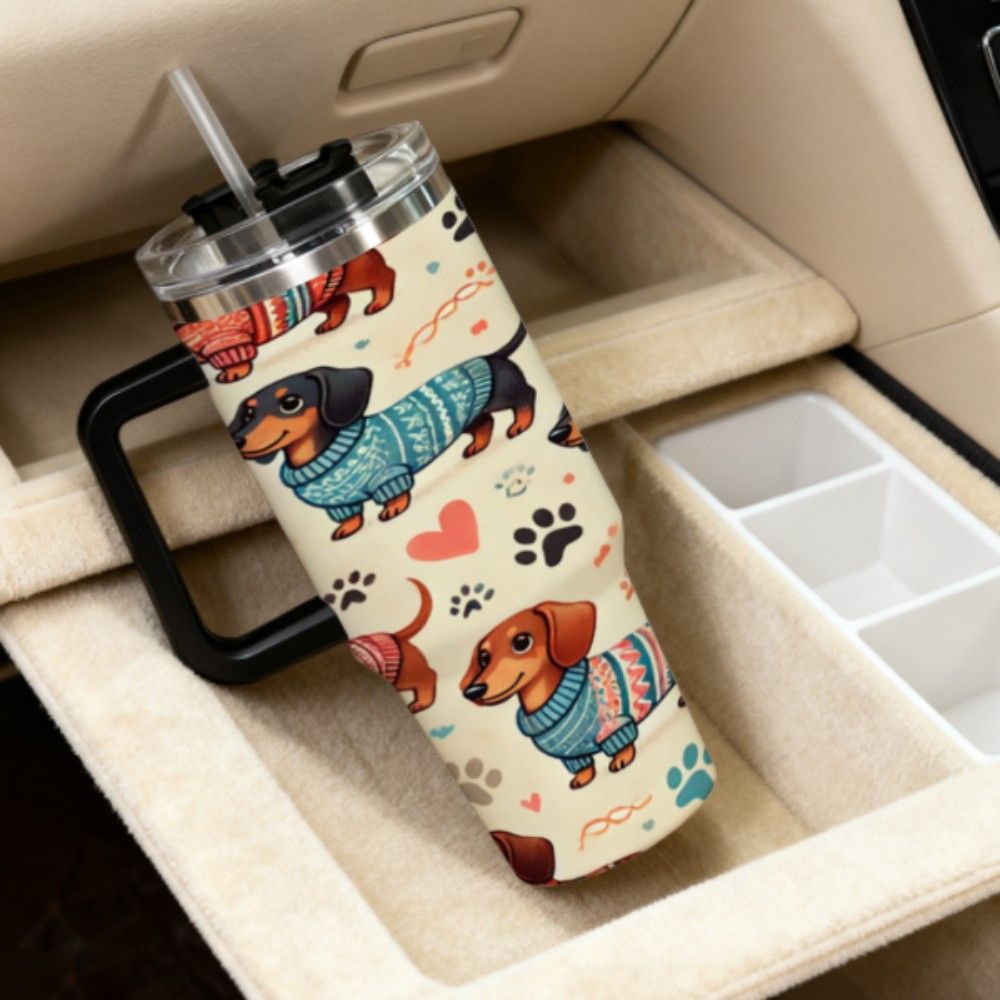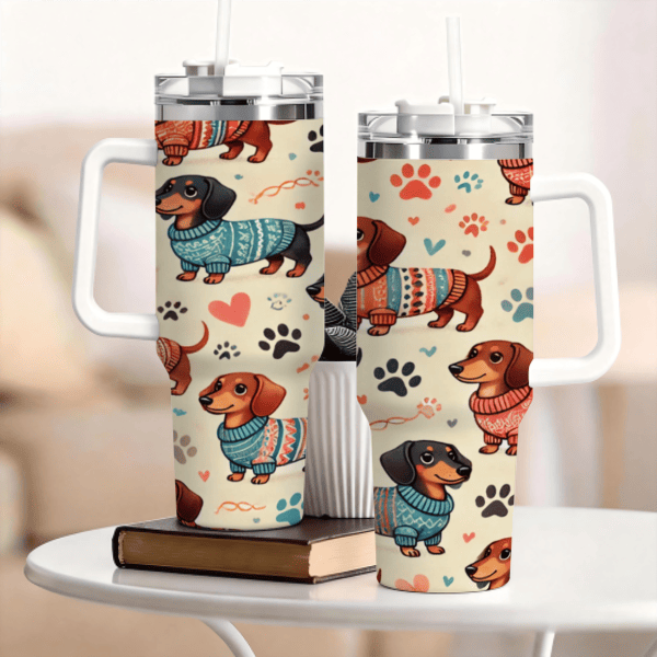 Be the first to review “1pc 2D Flat Printed Dachshund Tumbler, Stainless Steel Car Cup with Retro Polka Dot & Paw Print, Cute Vintage Sweater Dog Water Bottle”