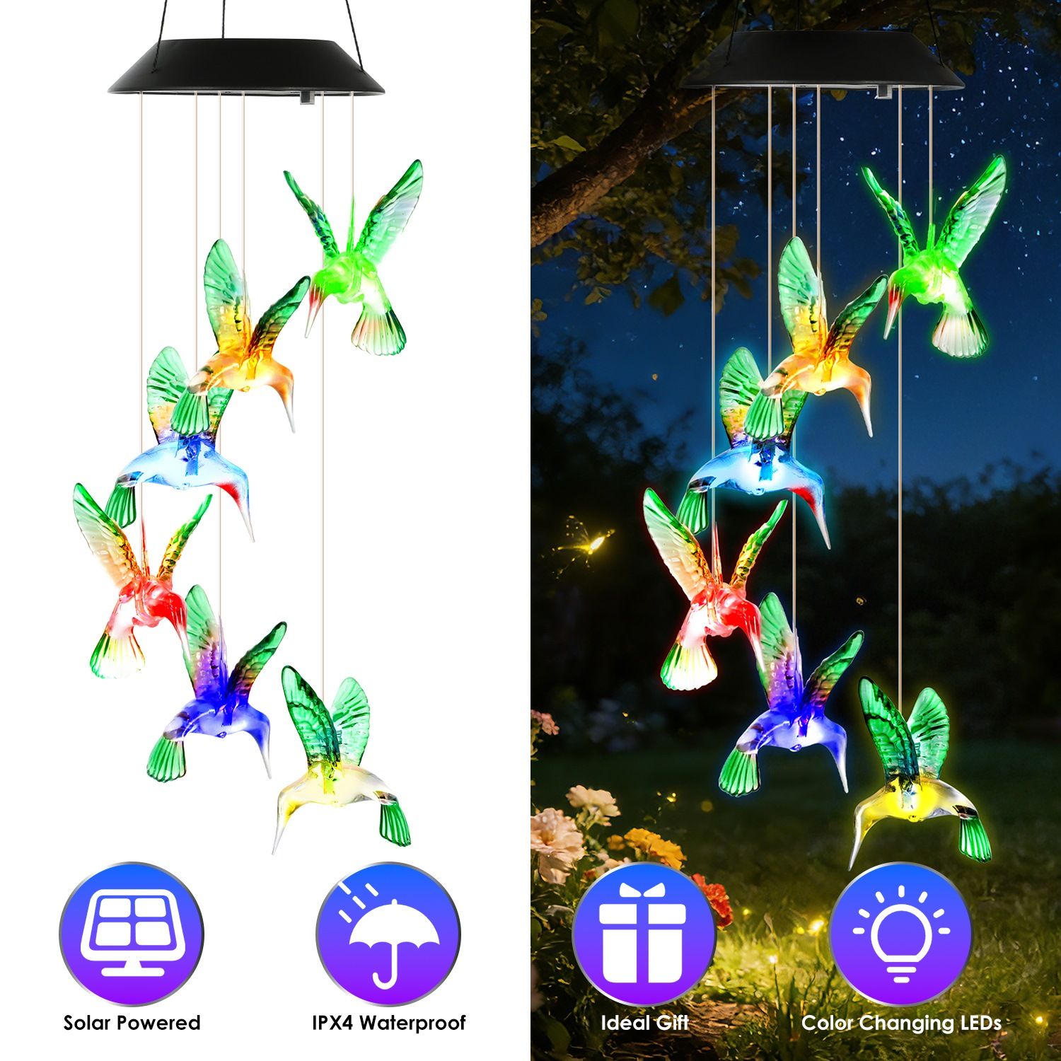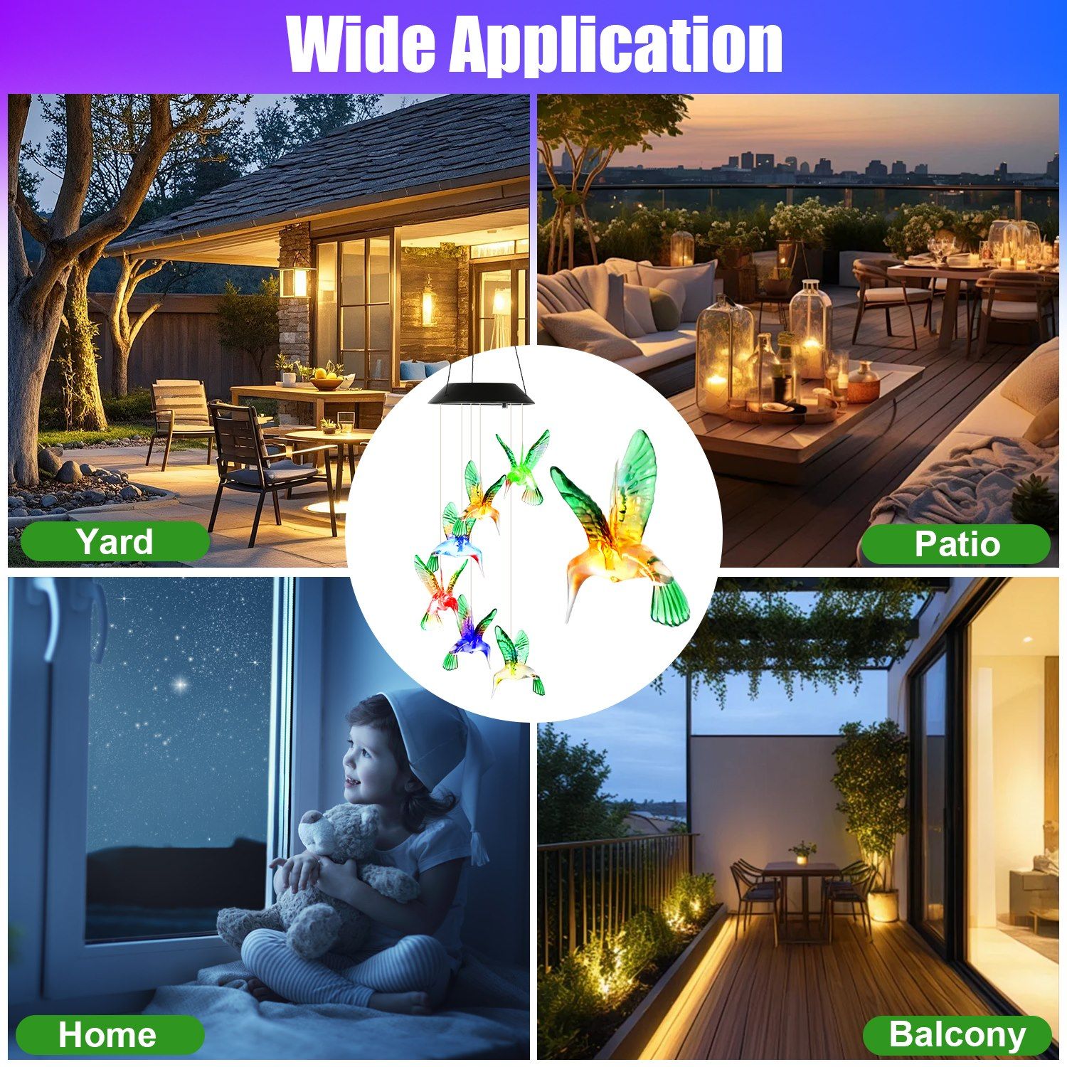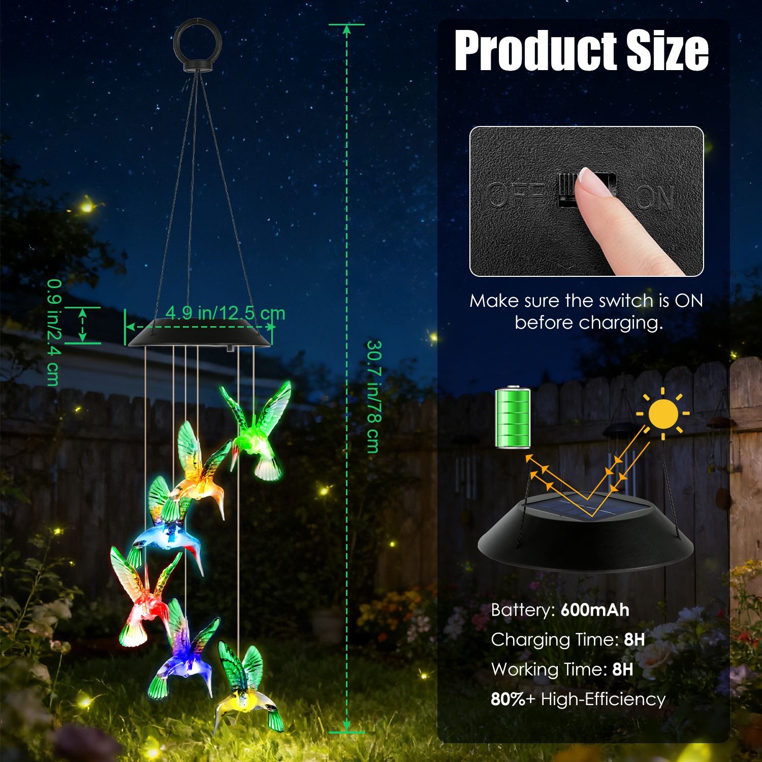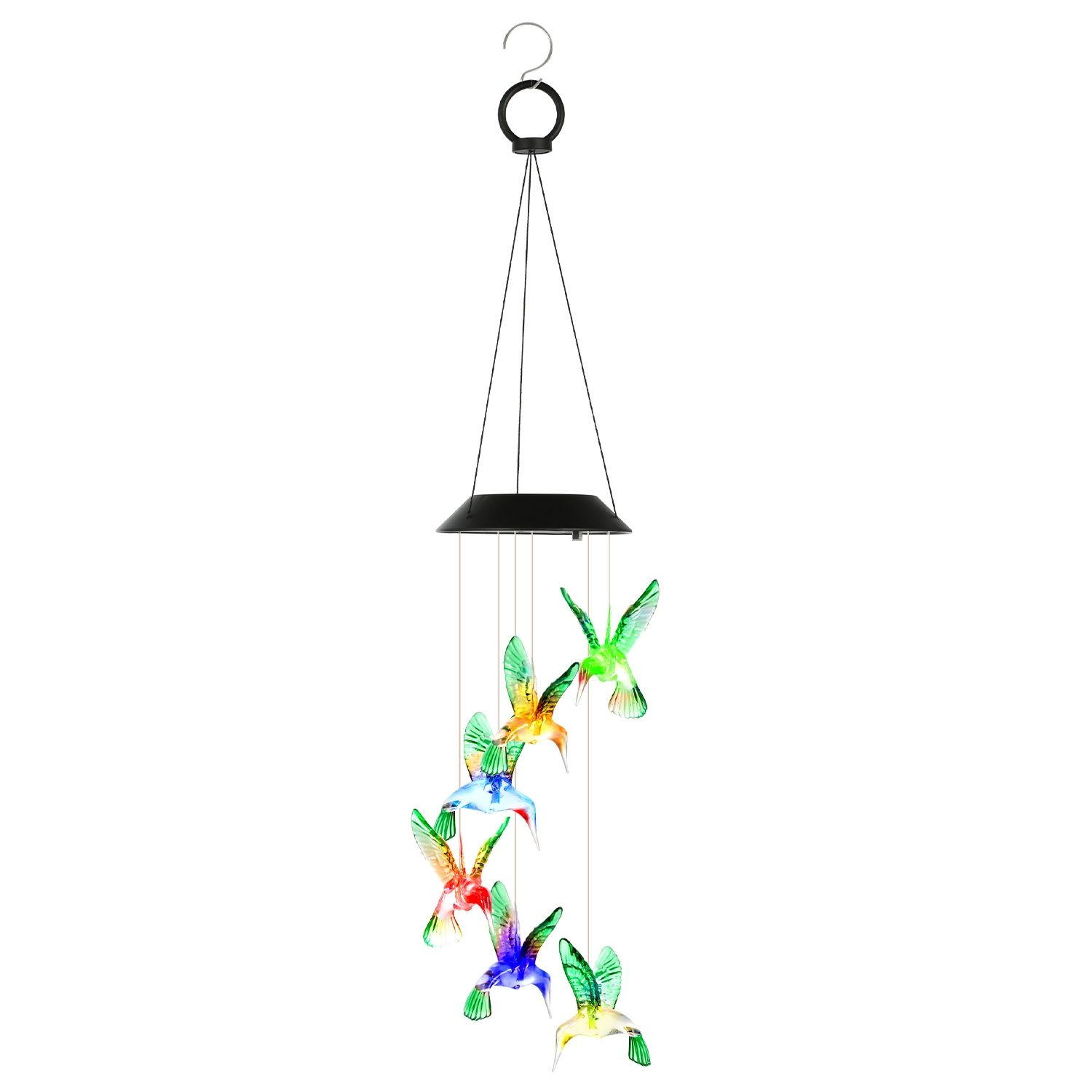 *Emulated Hummingbird Wind Chime Lamp*:Made up of premium and durable ABS and PVC materials,the wind chime lamp includes six lifelike and gorgeous hummingbirds,lightweight and compact,a perfect decoration for your garden,yard,patio,etc. It can make crisp sound when the hummingbirds bumping together in the wind,which is a feast for hearing.