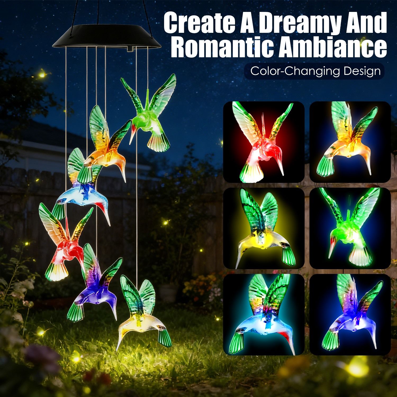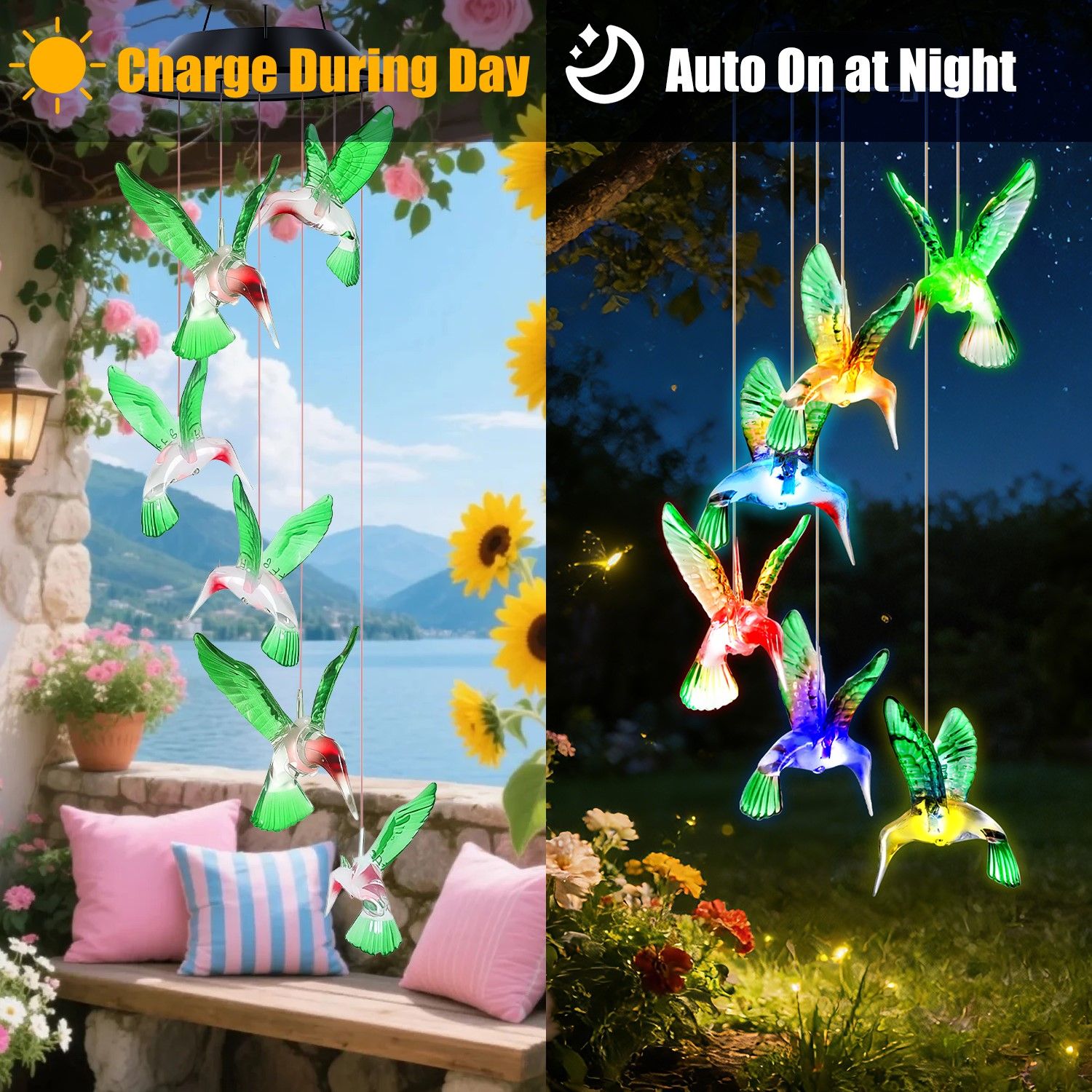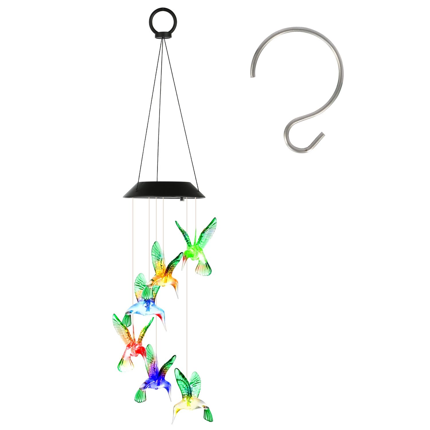 *Emulated Hummingbird Wind Chime Lamp*:Made up of premium and durable ABS and PVC materials,the wind chime lamp includes six lifelike and gorgeous hummingbirds,lightweight and compact,a perfect decoration for your garden,yard,patio,etc. It can make crisp sound when the hummingbirds bumping together in the wind,which is a feast for hearing.