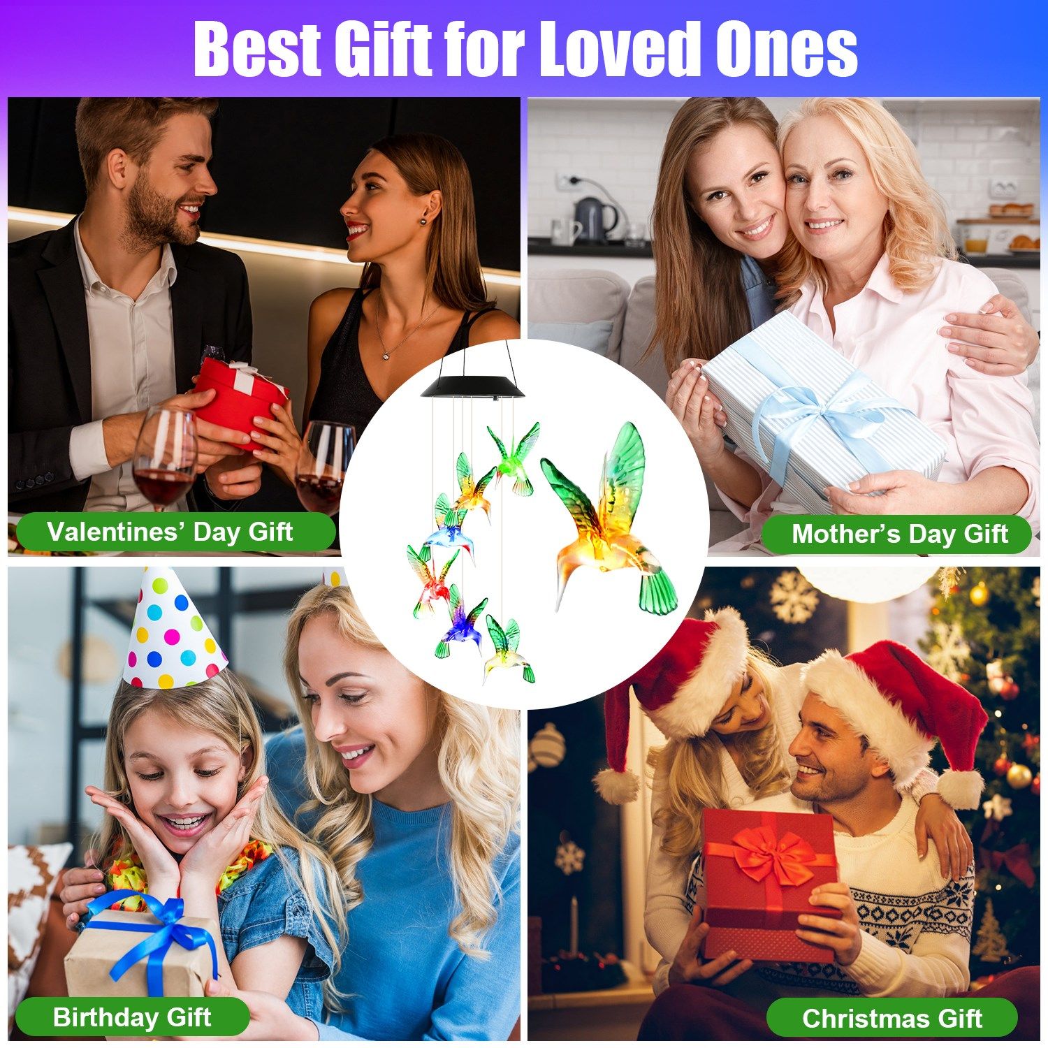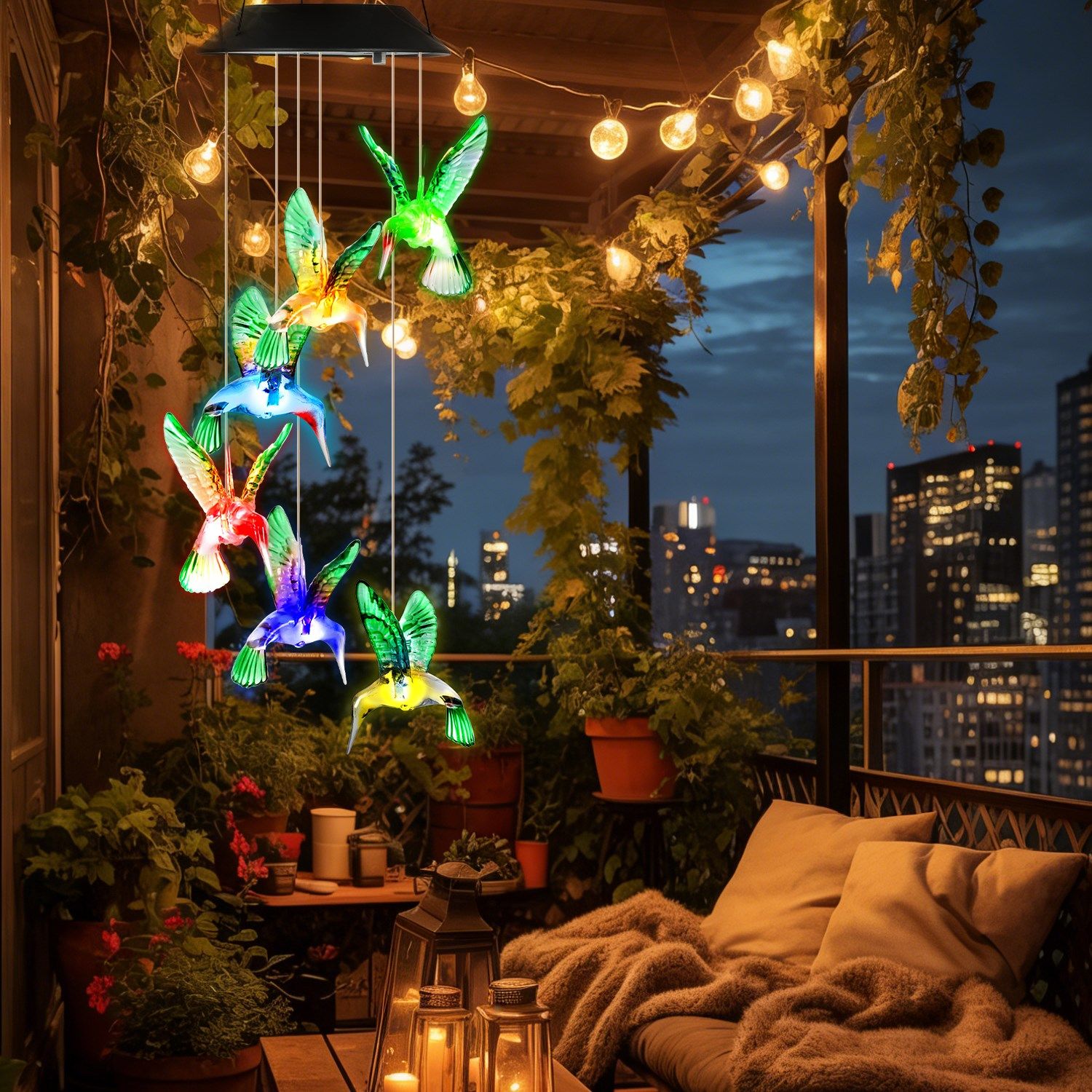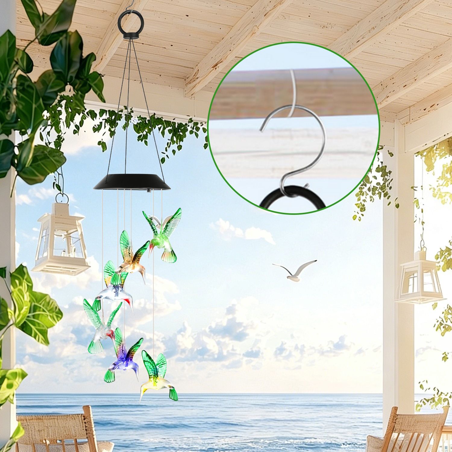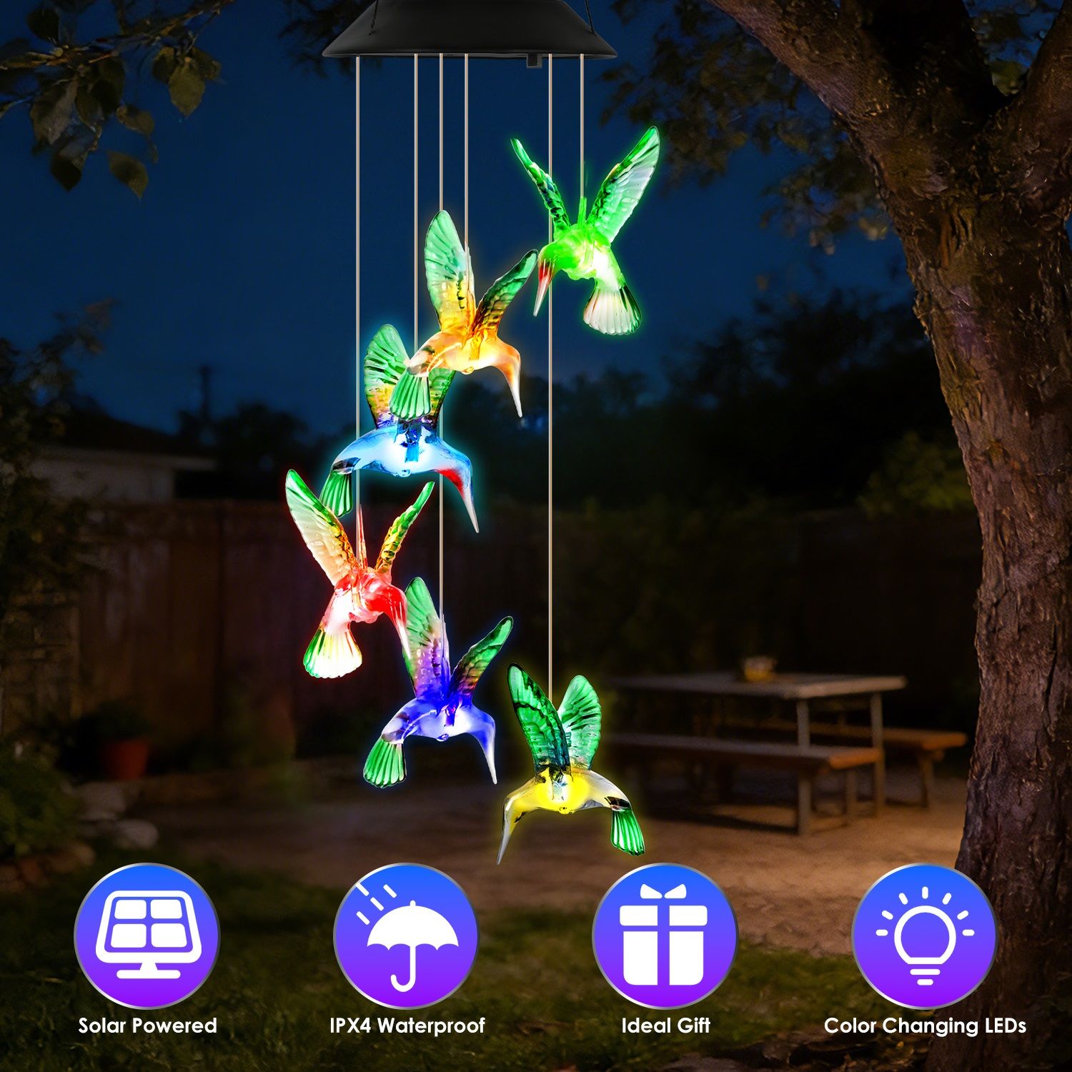 *Emulated Hummingbird Wind Chime Lamp*:Made up of premium and durable ABS and PVC materials,the wind chime lamp includes six lifelike and gorgeous hummingbirds,lightweight and compact,a perfect decoration for your garden,yard,patio,etc. It can make crisp sound when the hummingbirds bumping together in the wind,which is a feast for hearing.