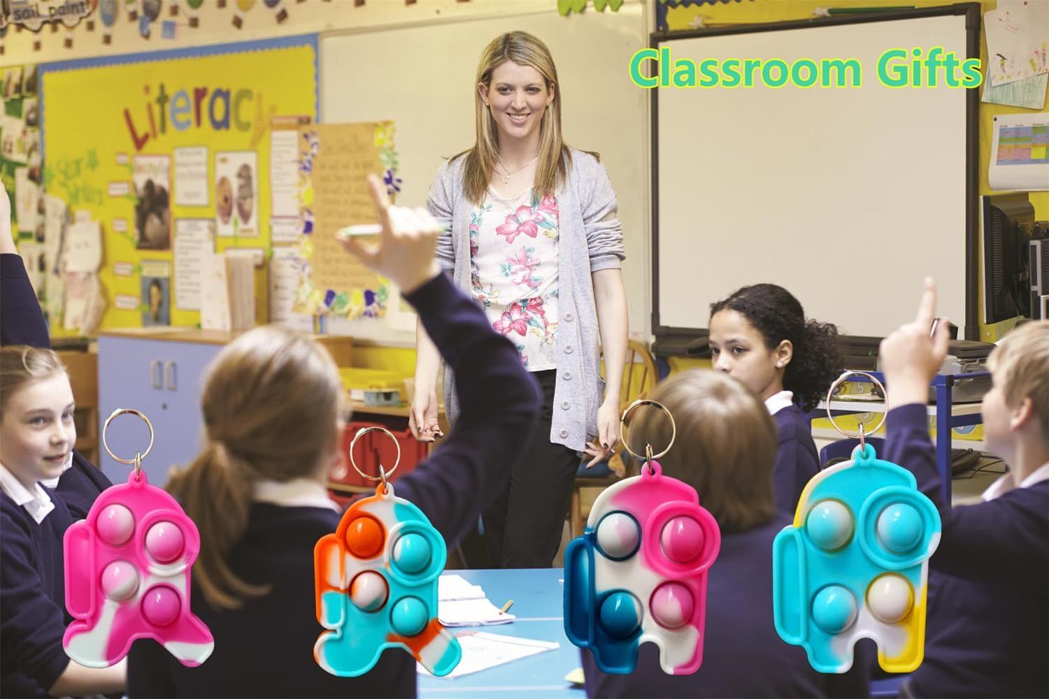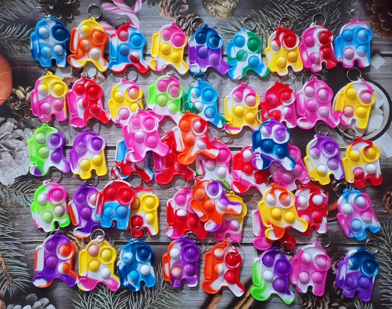 30 Packs Kids Christmas Valentine Party Favors and Classroom Students Gifts, Push Fidget Bubble Fidget Sensory Bulk Pop Keychain,Boys Girls Holiday Camp Small Rainbow Activities Prizes