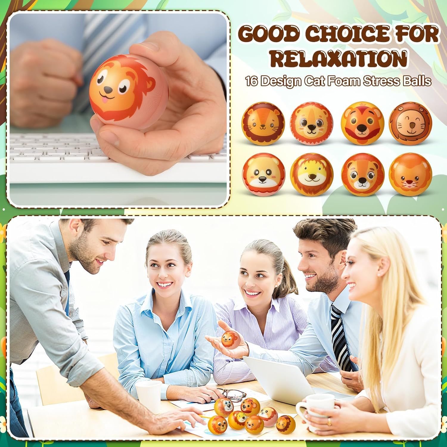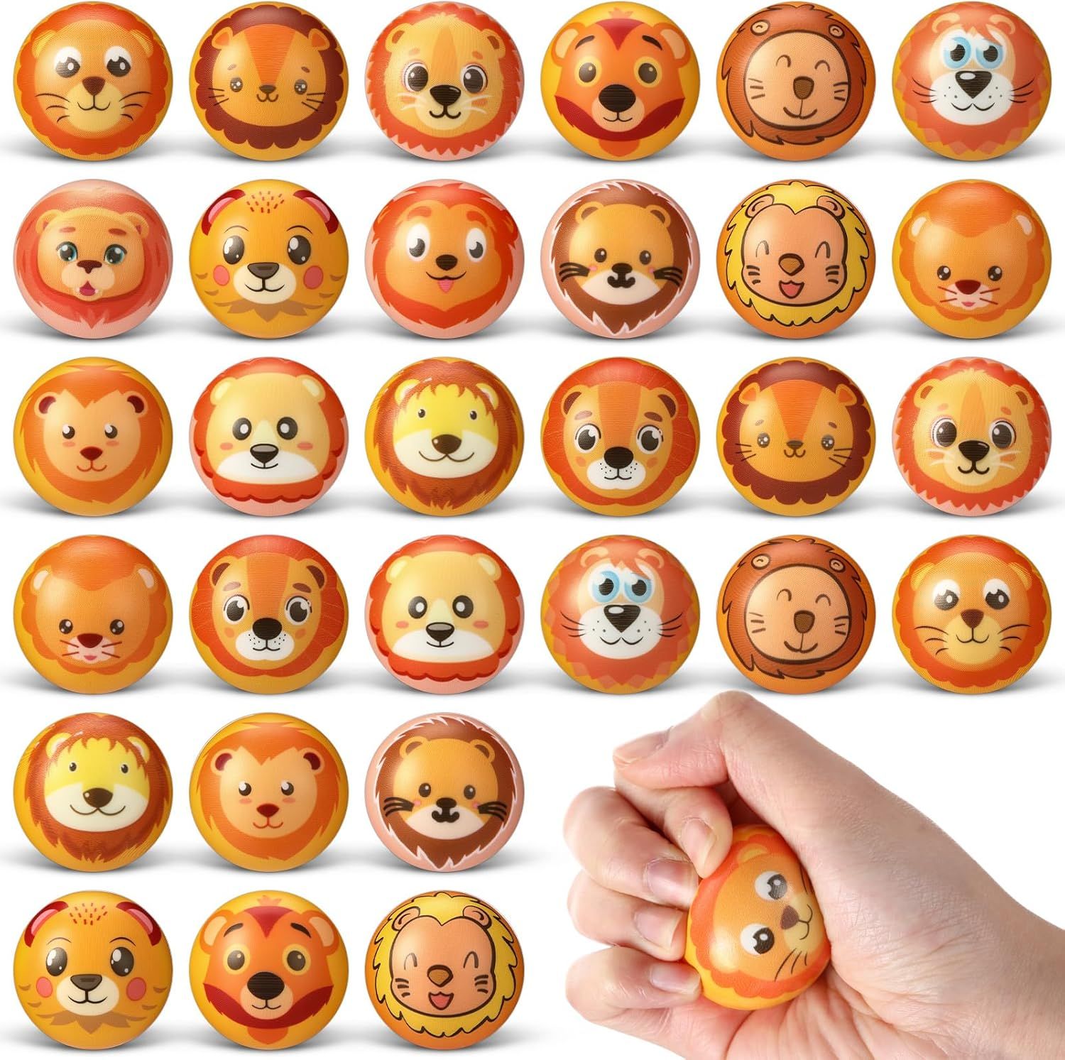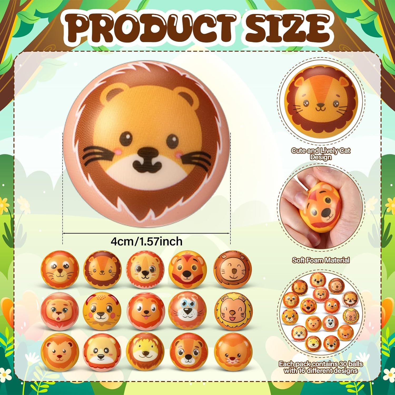 30 Pcs Animal Stress Balls Lion Cat Foam Squeeze Bouncy Ball Hand Exercise Fidget Gift for Halloween Birthday Party Favor Decorations Adults Reward Goodie Bag Stuffer