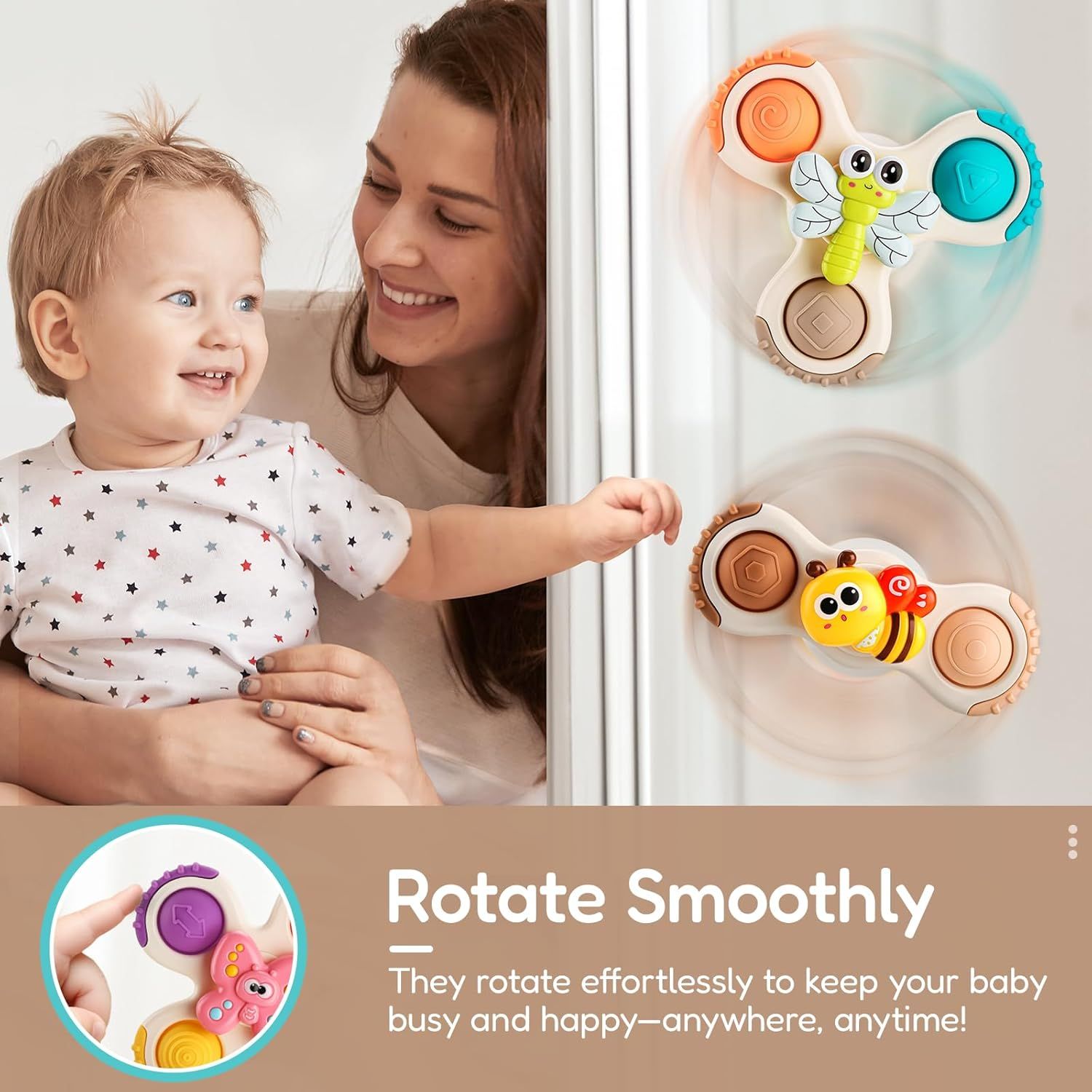 3PCS Pop Suction Cup Spinner Toys for 1 Year Old Boy Girl, Spinning Tops Toddler Stocking Stuffers|Baby Bath Toy for Kids