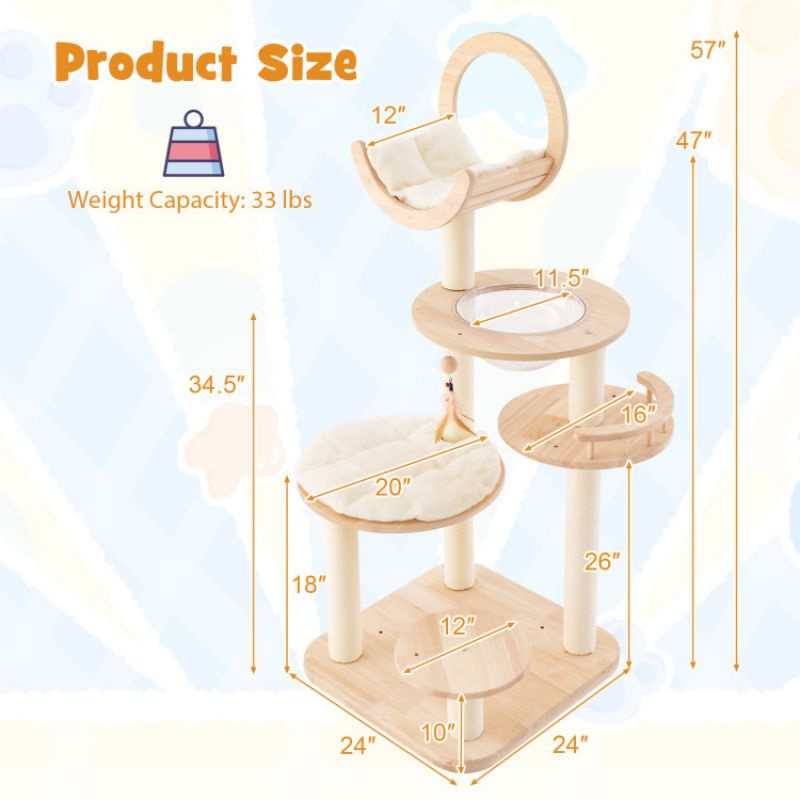 4.Durable and Stable Structure: The multi-level cat tree is well balanced with a wide thickened base. And the kitten activity center is crafted with solid rubber wood, which is known for its sturdiness and resistance to cracking, thus ensuring long lifespan.