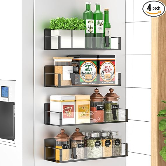 4 Pack Magnetic Spice Storage Rack Organizer for Refrigerator and Oven, Clear Fridge Organizers and Storage