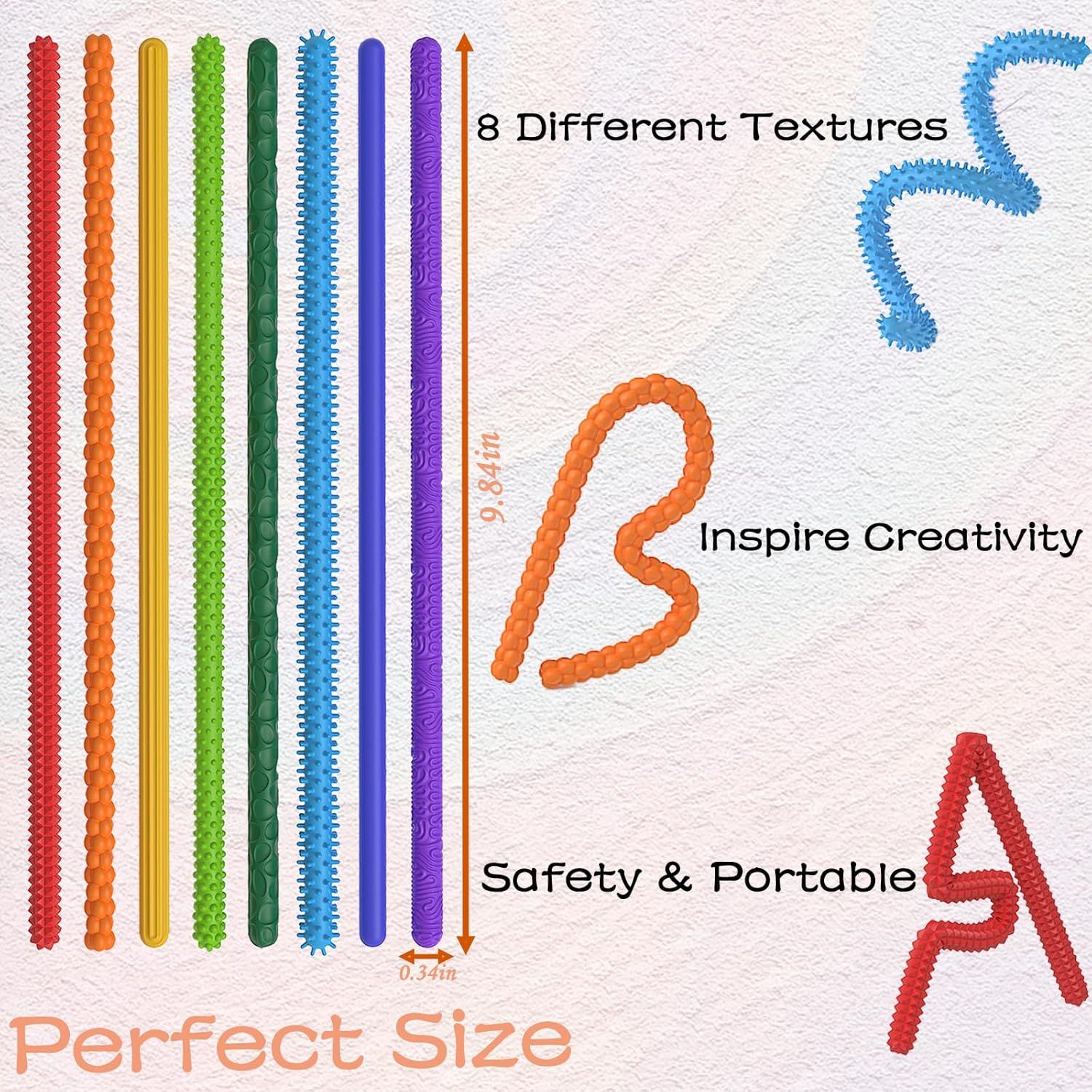 8Pack Valentines Day Gift for Kids Fidget Toys Sensory Sticks for Kids Adults,Textured Silicone Sensory Toys for Kids with Autism,Flexible Sensory Fidget Sticks for Classroom Must Haves,Travel Fidgets