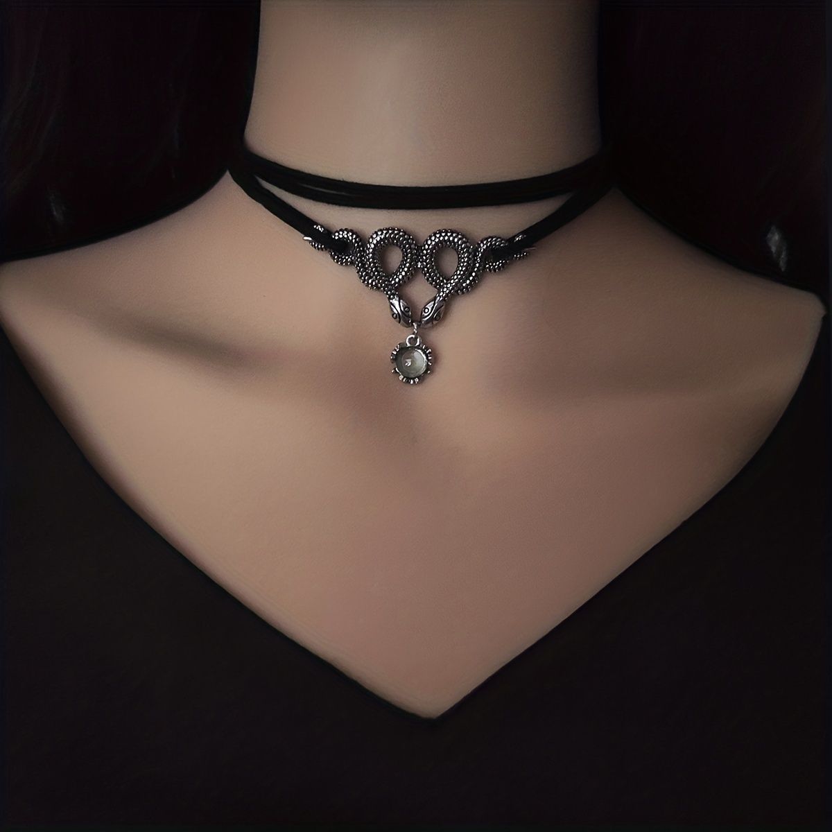 Be the first to review “Add a Retro Twist to Your Style with Double Heart Pendant Snake Glass Bead Necklace – Women’s Punk Style”