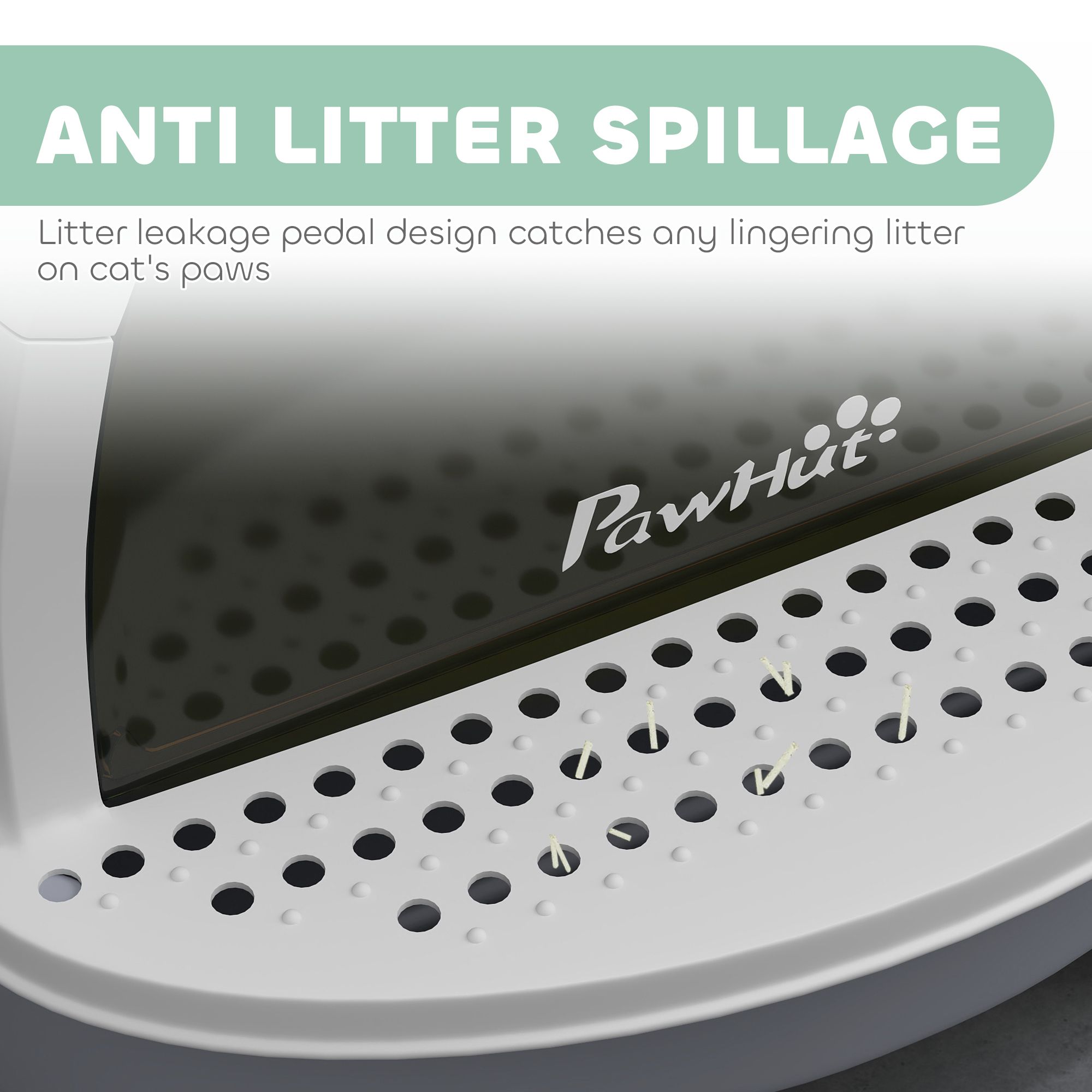 - – Front entrance with litter leakage pedal reduces mess