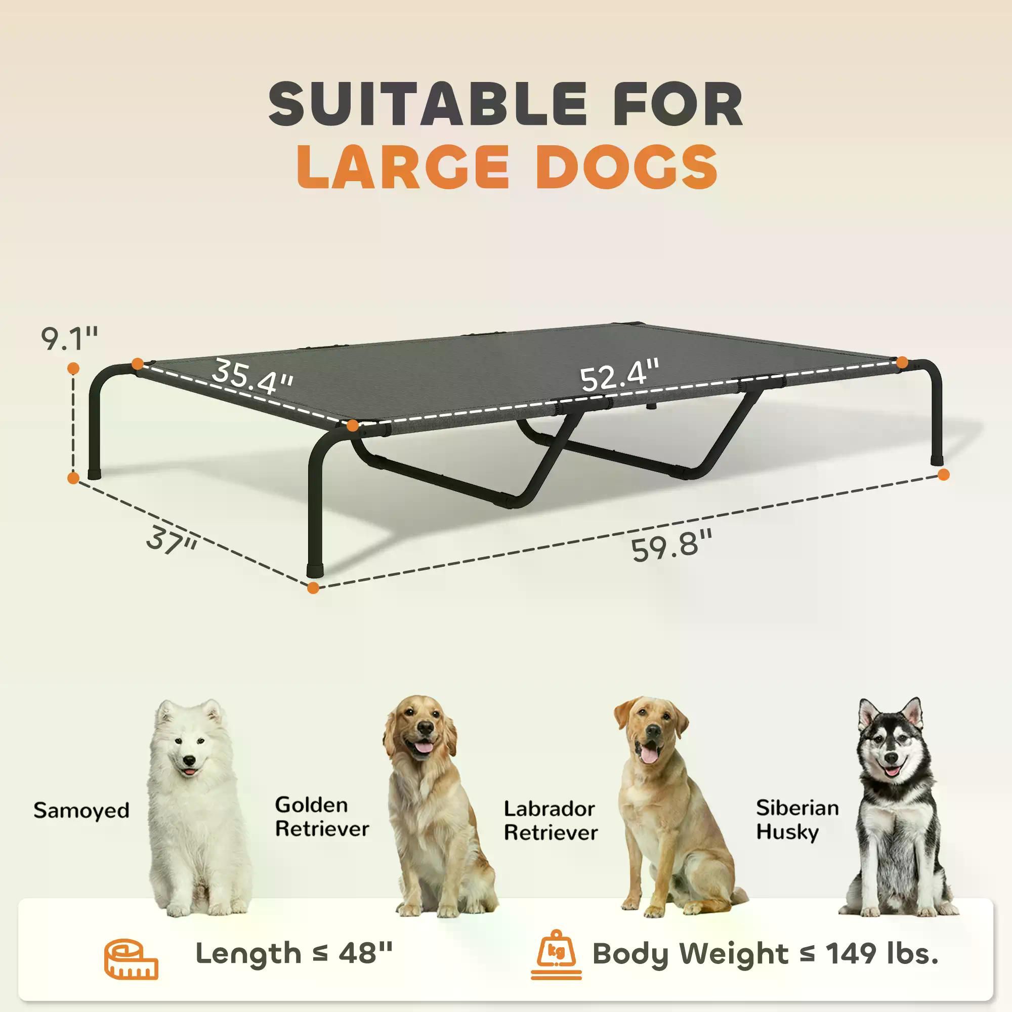 • – Suitable for large dogs body weight of 149 lbs. and a length of no more than 48"