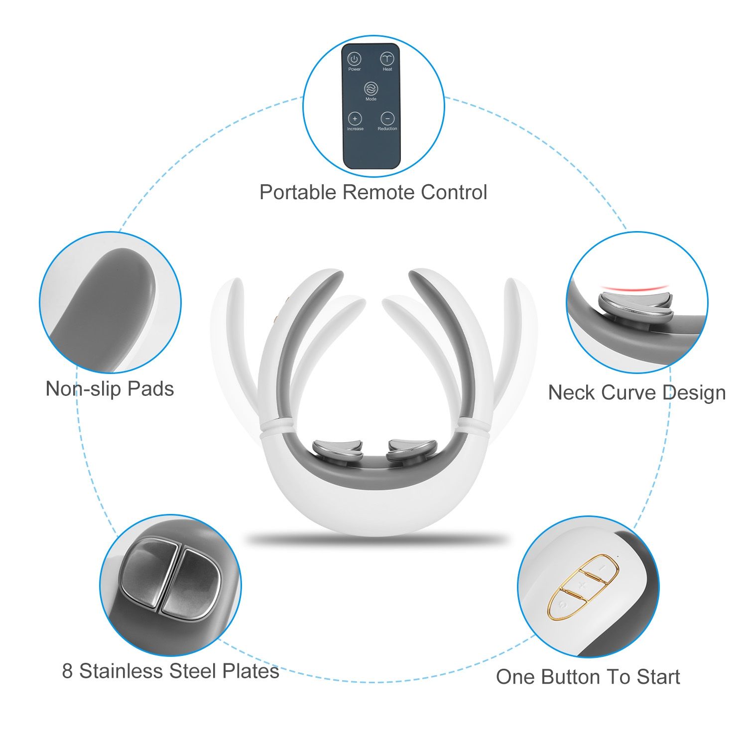 Soothing Hot Compress & Remote Control: The hot compress helps relax the muscles in the neck area more effectively, providing additional comfort and relief. The electric pulse neck massager also comes with a remote control to add more convenience for you!