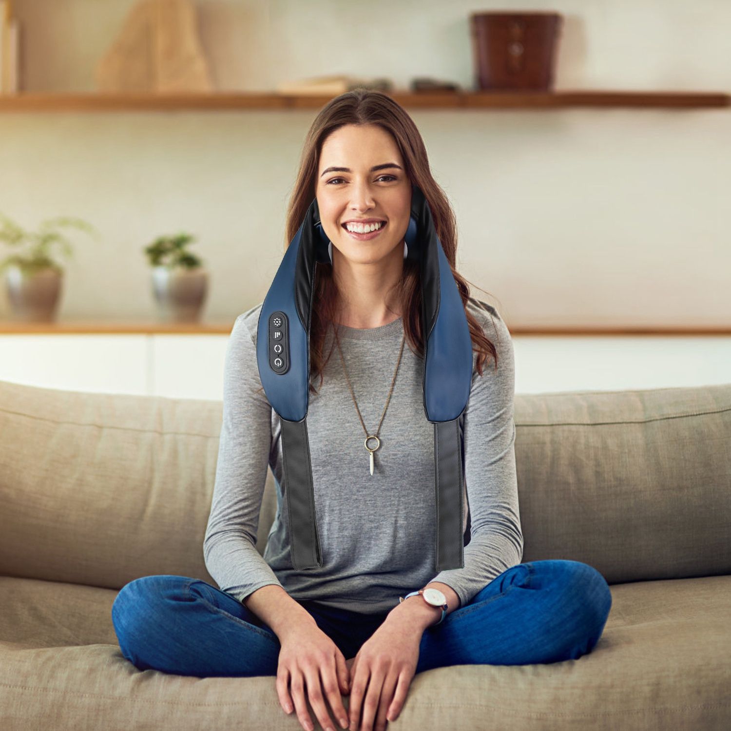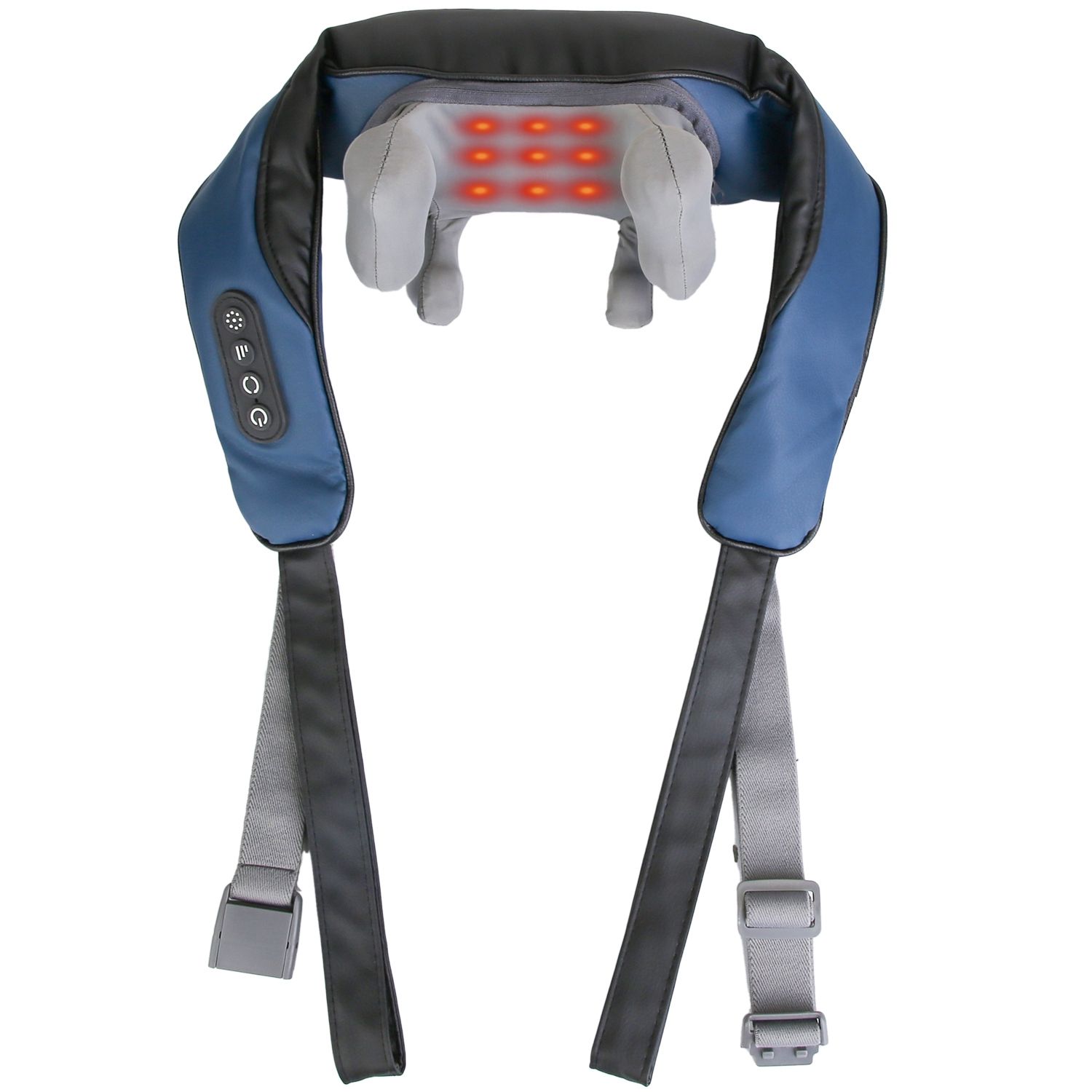 *Heat Function & 3 Speeds*:Built-in 9Pcs LED infrared light beads can constantly heat up your neck muscle and speed up blood circulation. Advanced NTC temperature control technology achieves automatically shut off while overheating,ensures your safety. 3 Adjustable speed levels adapt to the strength diverse people(teenager,adult,senior,pregnant woman) can withstand.