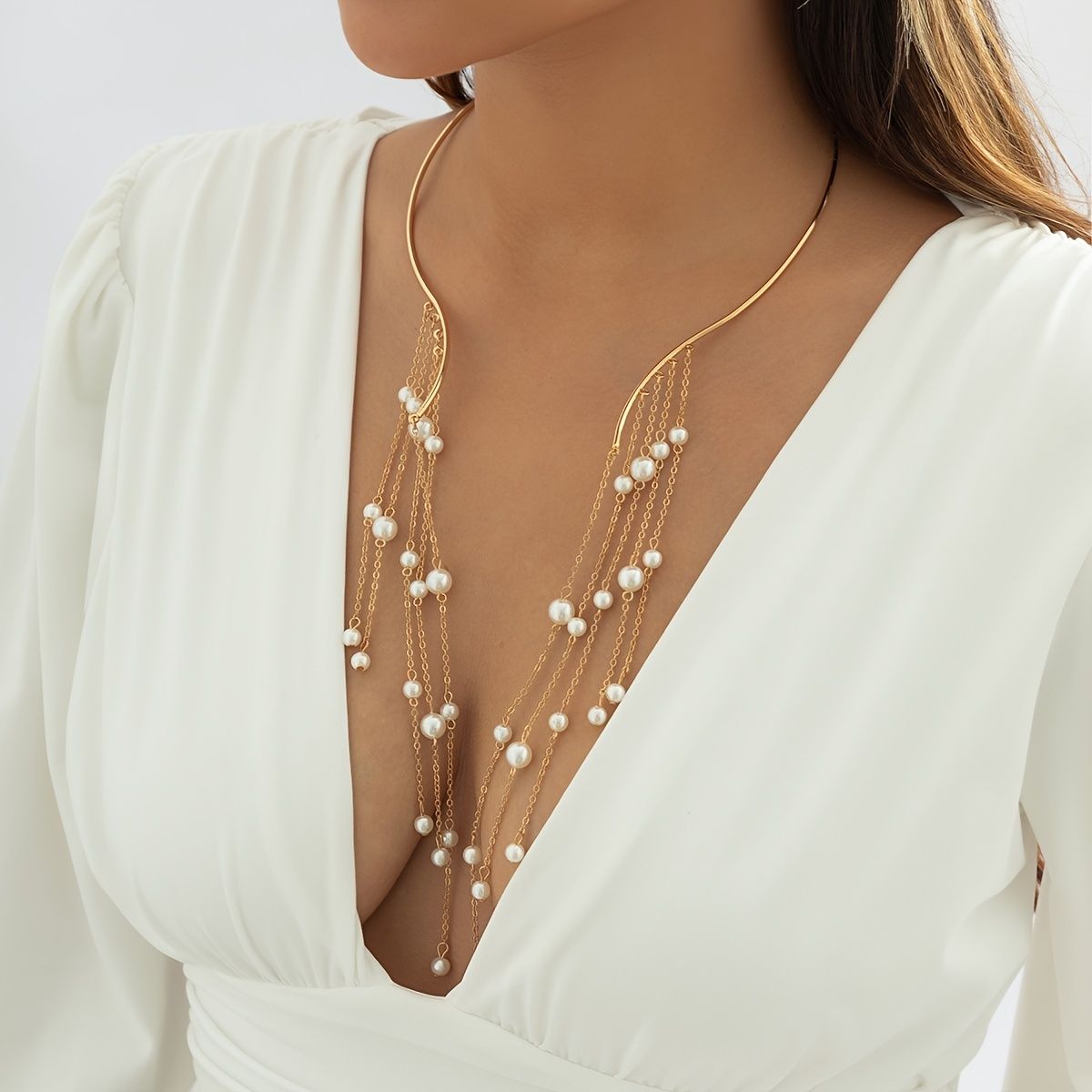 Be the first to review “Exaggerate Faux Pearl Tassel Open Choker Necklace Elegant Fine Jewelry For Women Girls Gift”