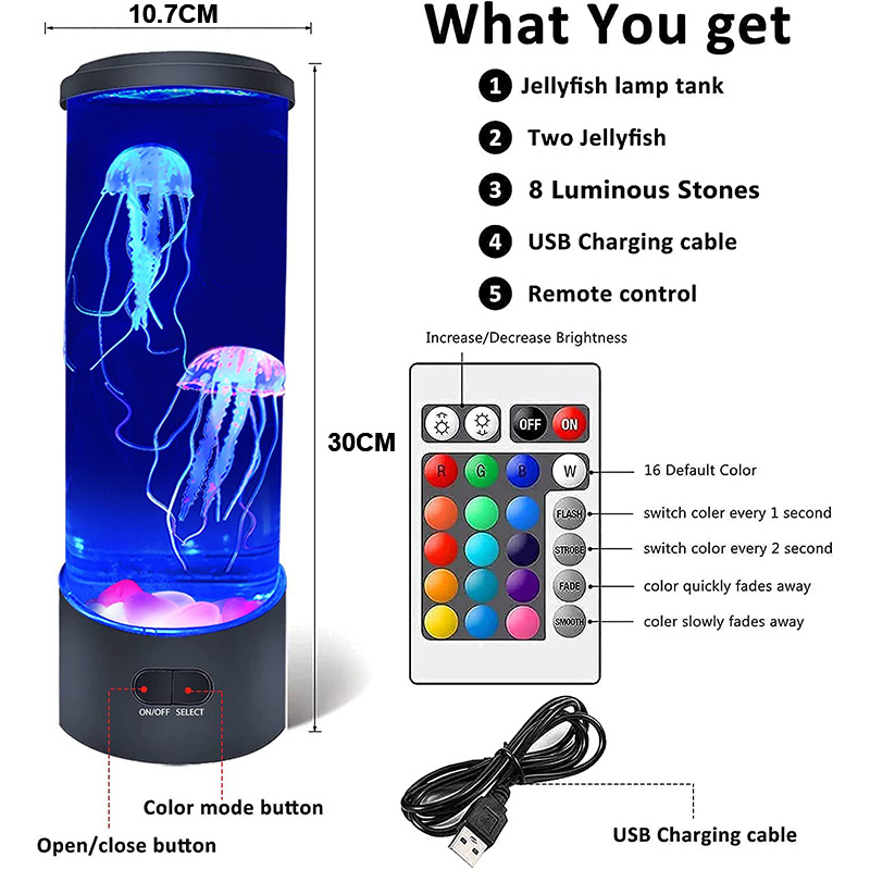 Note: If the jellyfish does not move; please check whether there are bubbles under the jellyfish. If yes; please use a long tool to gently push the bubble out from under the jellyfish.