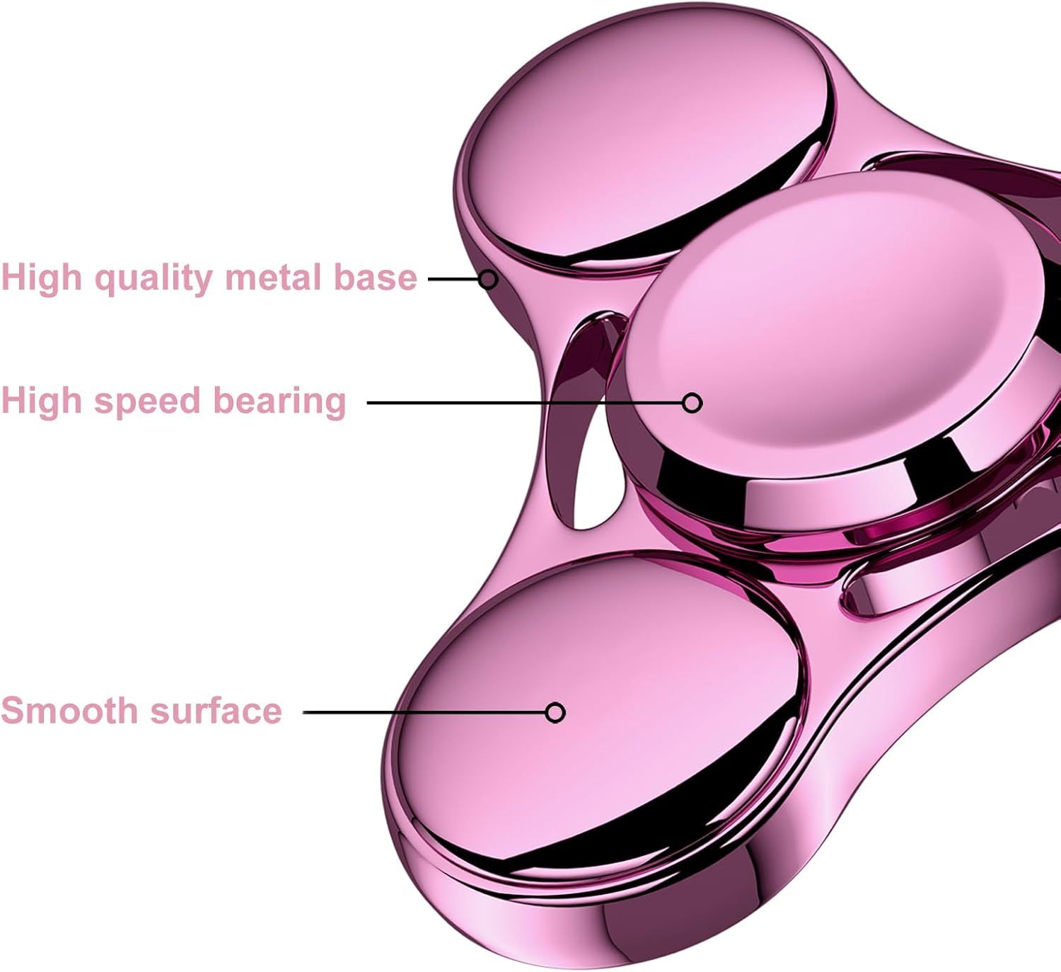 Fidget Spinner Toy Durable Stainless Steel Bearing High Speed Spins Precision Metal Hand Spinner EDC ADHD Focus Anxiety Stress Relief Boredom Killing Time Toys for Adults Kids (Pink)
