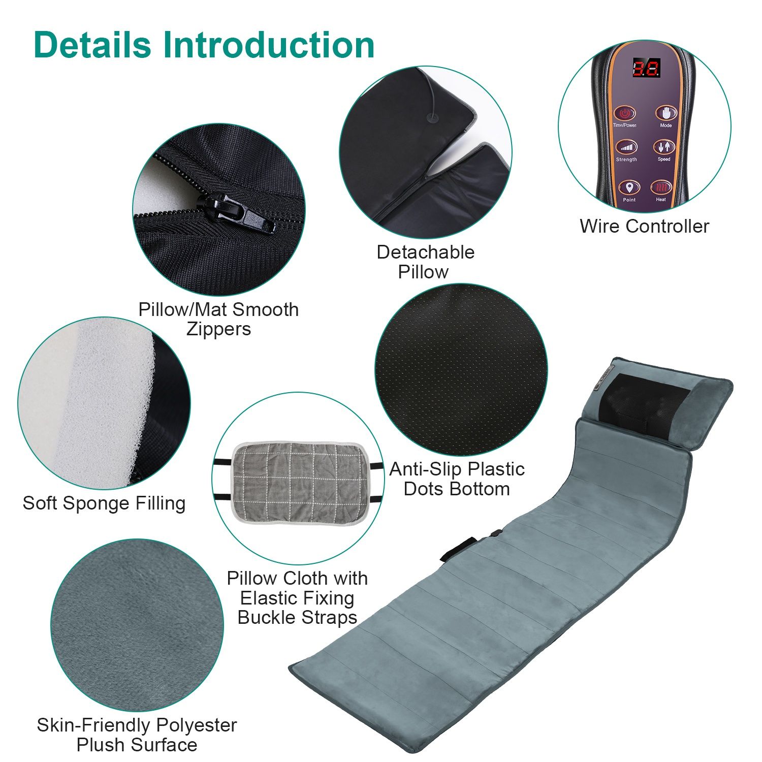 • Full Body Massage Mat: Our massage mat features 10 massage points including Back, Buttock, Waist, Thigh, Calf, and heating therapy function, it’s able to give you a therapeutic massage that helps release tension, stress, and fatigue after a long work day. You can choose 9 designated vibration modes, 9 point-selection vibration modes, and enjoy full control over 9-level vibration intensity and 9-level speeds as you hit all the right spots.