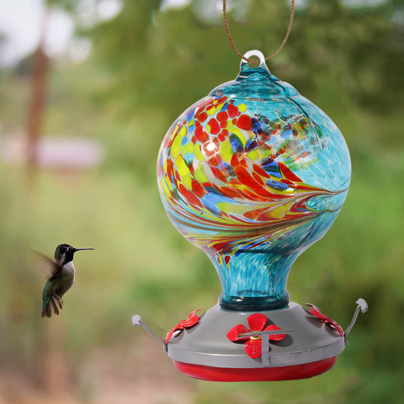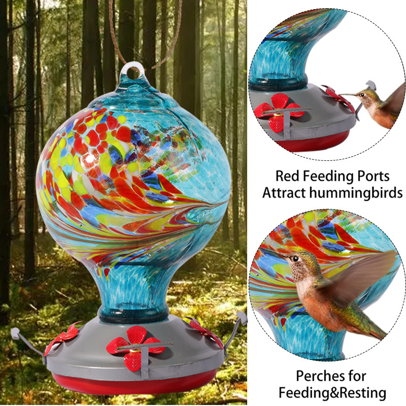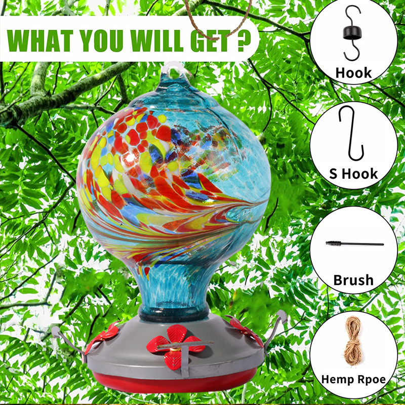 THE ARTWORK THAT HUMMINGBIRDS DART INTO –  our hummingbird feeder comes in the distinctive flower bud shape with spiral grooves; which radiates the charm of curves and adds a great elegance to your yard. Mixing the natural beauty and modern arts; the bright colors flare on the crystal glass body will be equally attractive for human and hummingbirds to help you spend more time watching the birds rather than looking for them.