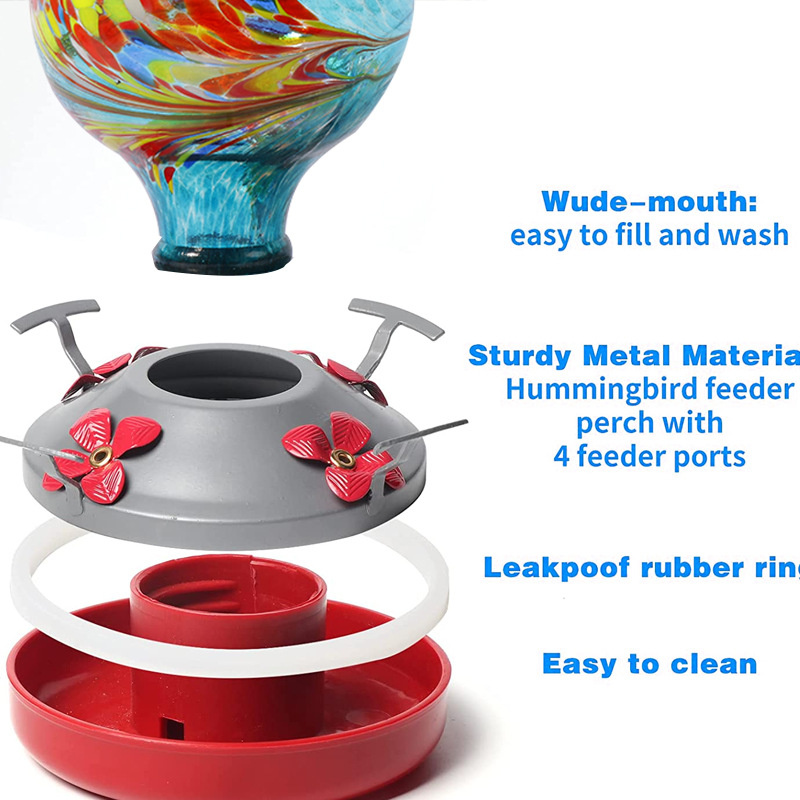 2X LEAKPROOF & RUSTPROOF – No more frustration by the incessant dripping from other bird feeders! The built-in sealing gasket of ours offer the extra protection against the leak. Owing to the advanced acid passivation technology; the metal base of this humming birds feeders for outside has 2X resistance to rust and corrosion than others. The ring perch around the base offers the seats for your feathered friends to free them from flapping wings while they enjoy a sip of nectar.