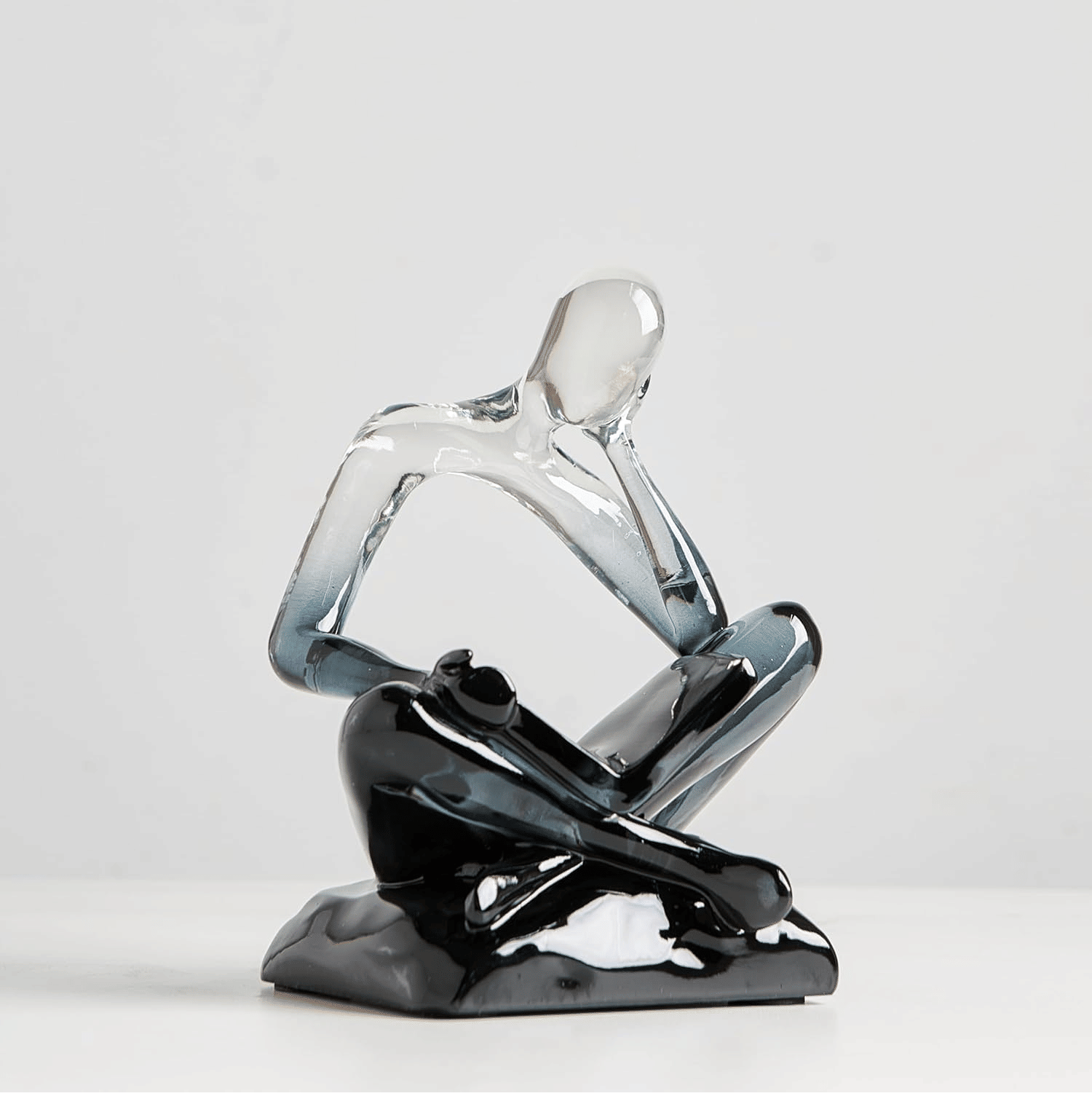 Resin Abstract Sculpture, Meditation & Reading Posture, Modern Home Decor Decor for Desk/Shelf, Art Figurine (Think – Gold Foil Color) (Thinking – Grey Gradient)