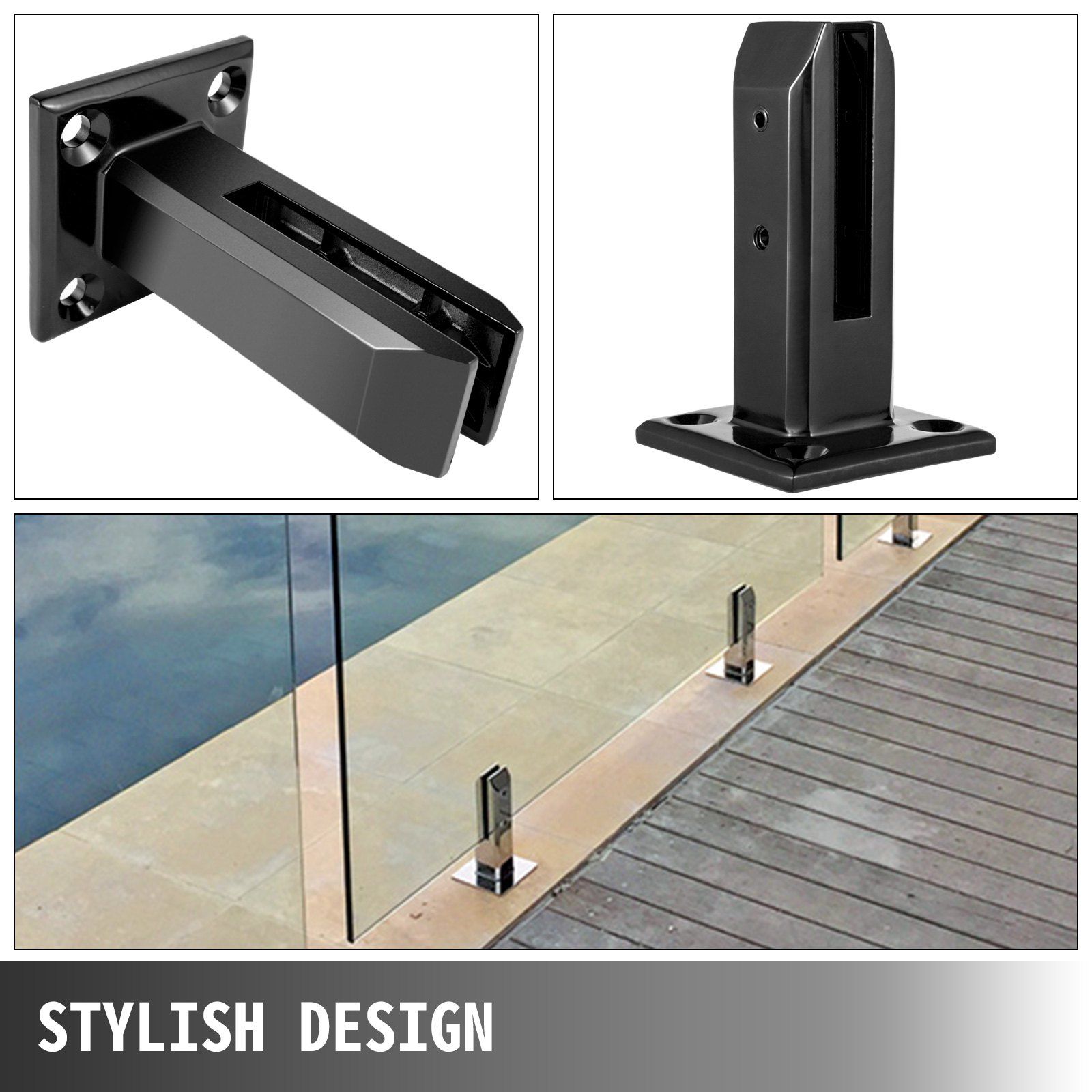 We provide 10PCS glass railings that suitable for glass thickness 3/10" (8 mm) to 1/2" (12 mm), no Holes required for glass panels.